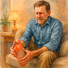 Один из самых типичных сигналов — резкая, пронзающая боль в суставе, чаще всего локализующаяся в основании большого пальца ноги. Однако дискомфорт может ощущаться и в других местах: коленях, лодыжках, пальцах рук. Эта боль появляется неожиданно, часто по ночам или под утро, когда тело находится в состоянии покоя, усиливая чувство дискомфорта.